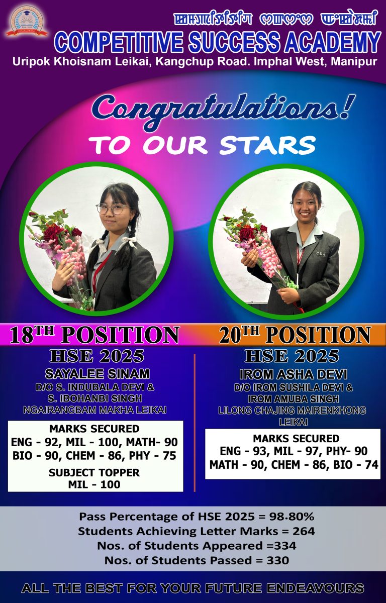 First of all, I congratulate the students who have passed the Class X Board Examination (BSEM, CBSE & other boards) of 2021 and have chosen the Competitive Success Academy to study in Class XI.